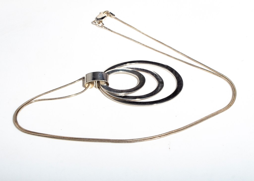 Pendant with three dancing ovals in polished sterling silver. The three ovals can move freely.