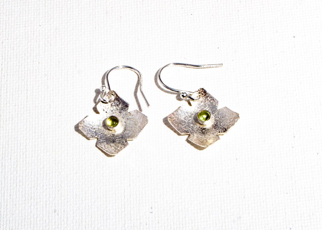 Chiffon finish and peridot cabochons