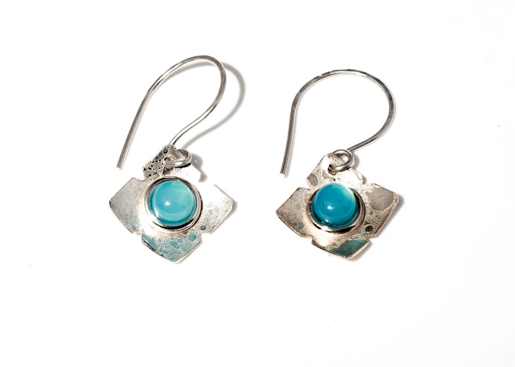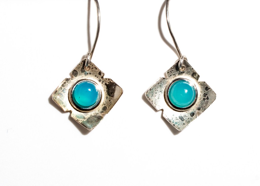 Moonscape finish and sea green agate cabochons